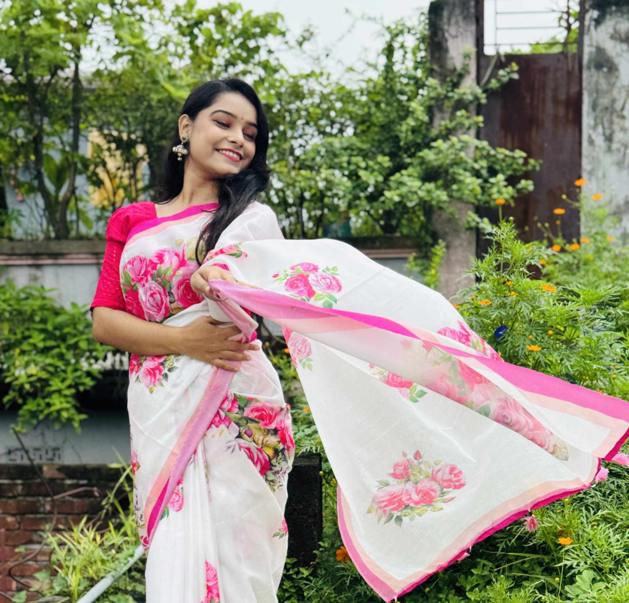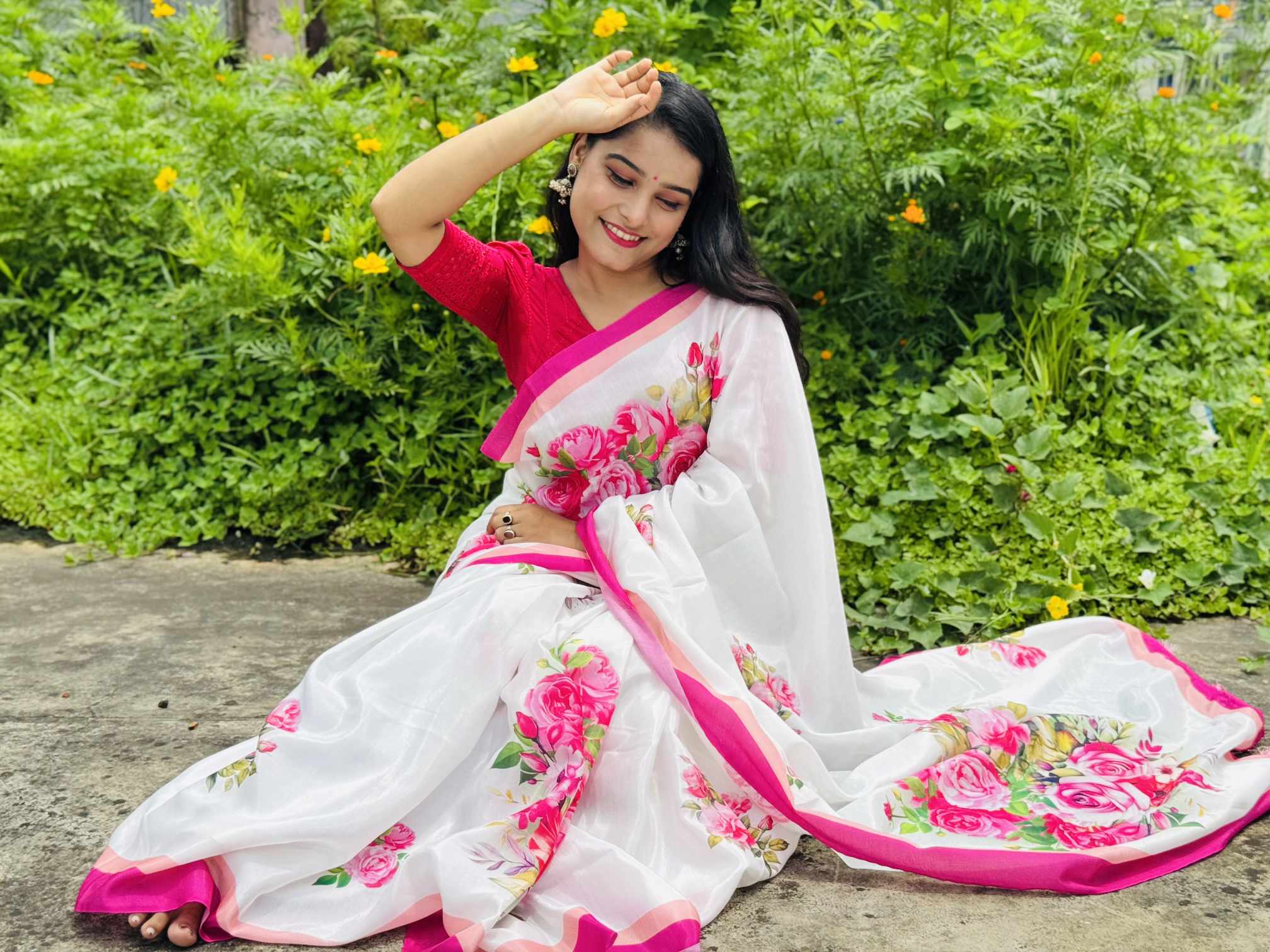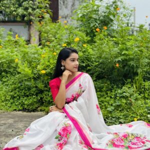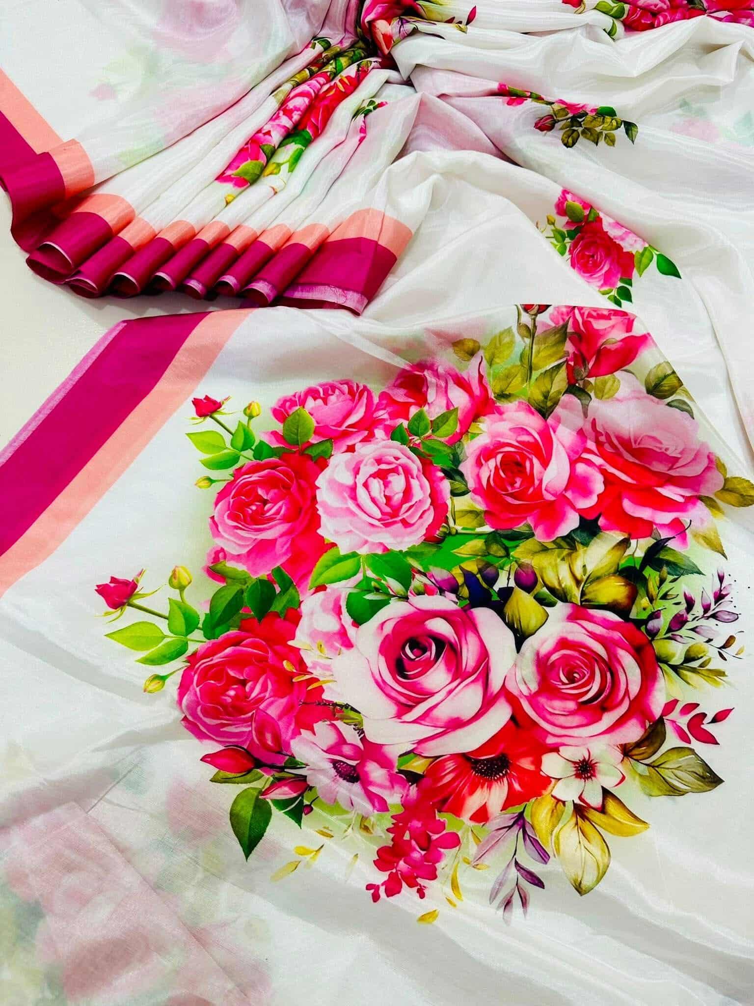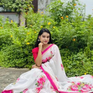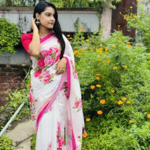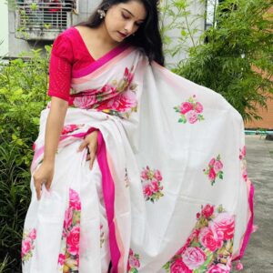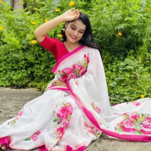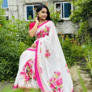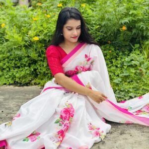 শাড়ি বিবরণ: এক্সক্লুসিভ জাপানি সিল্ক শাড়িতে ডিজিটাল প্রিন্ট করা![]()
