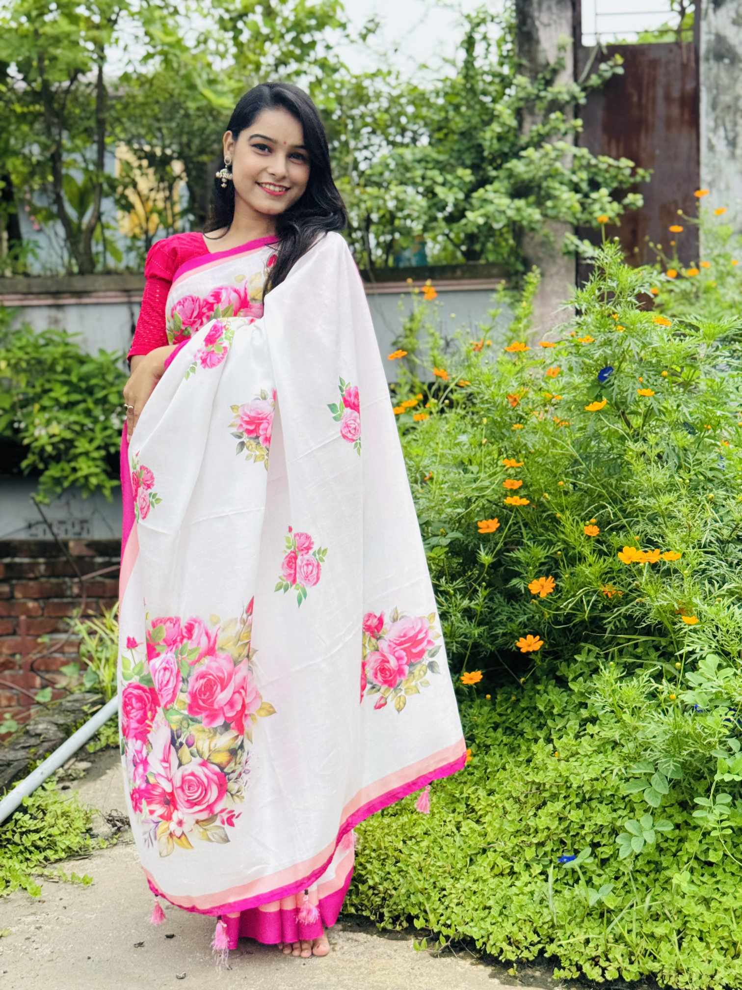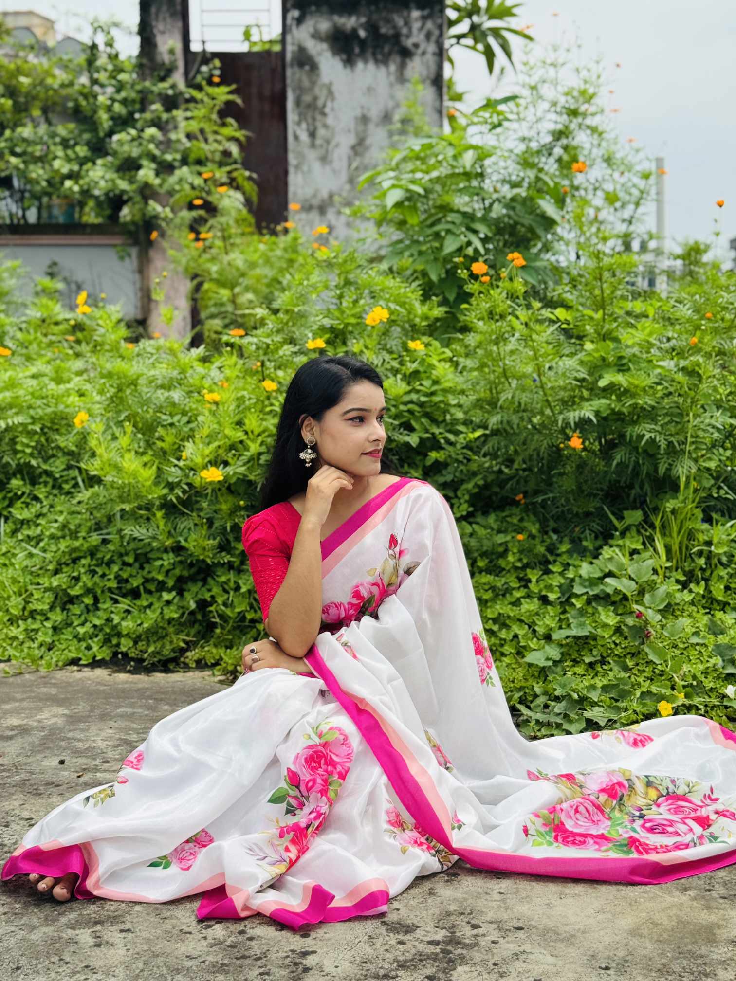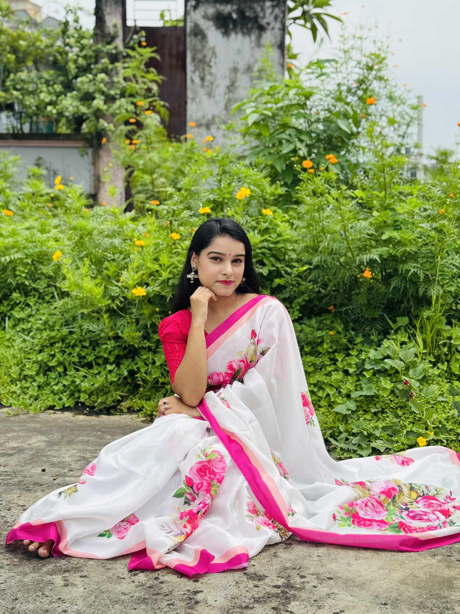 শাড়ি বিবরণ: এক্সক্লুসিভ জাপানি সিল্ক শাড়িতে ডিজিটাল প্রিন্ট করা![]()