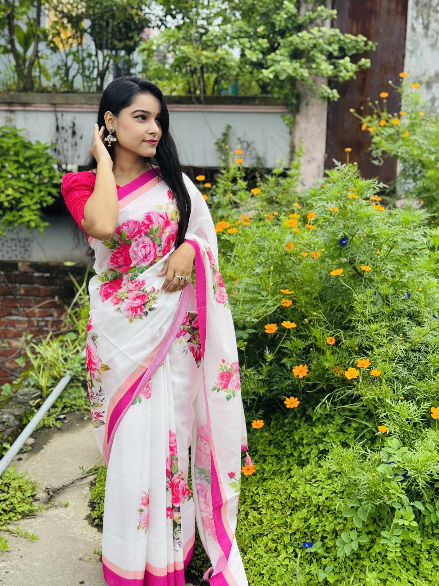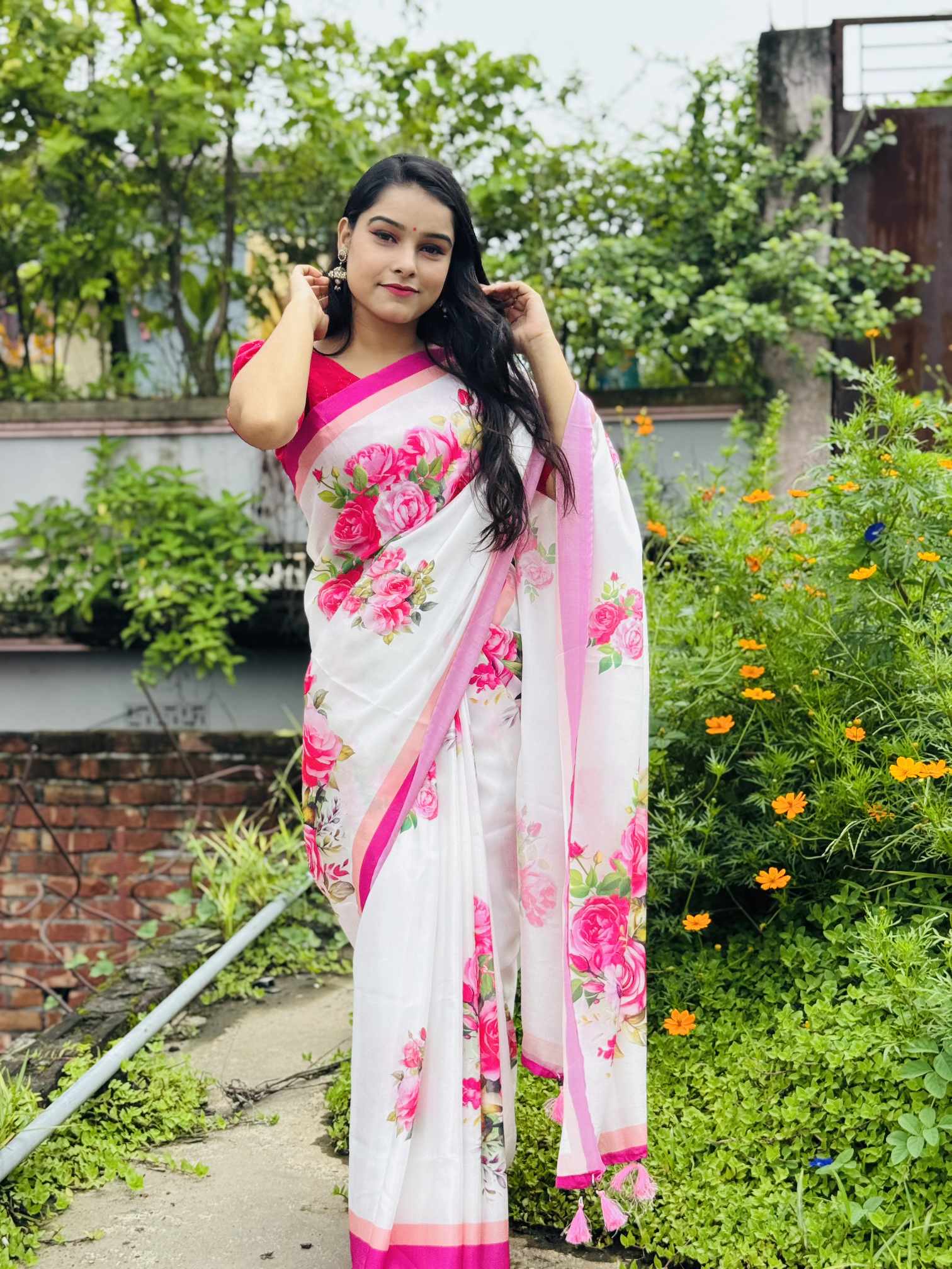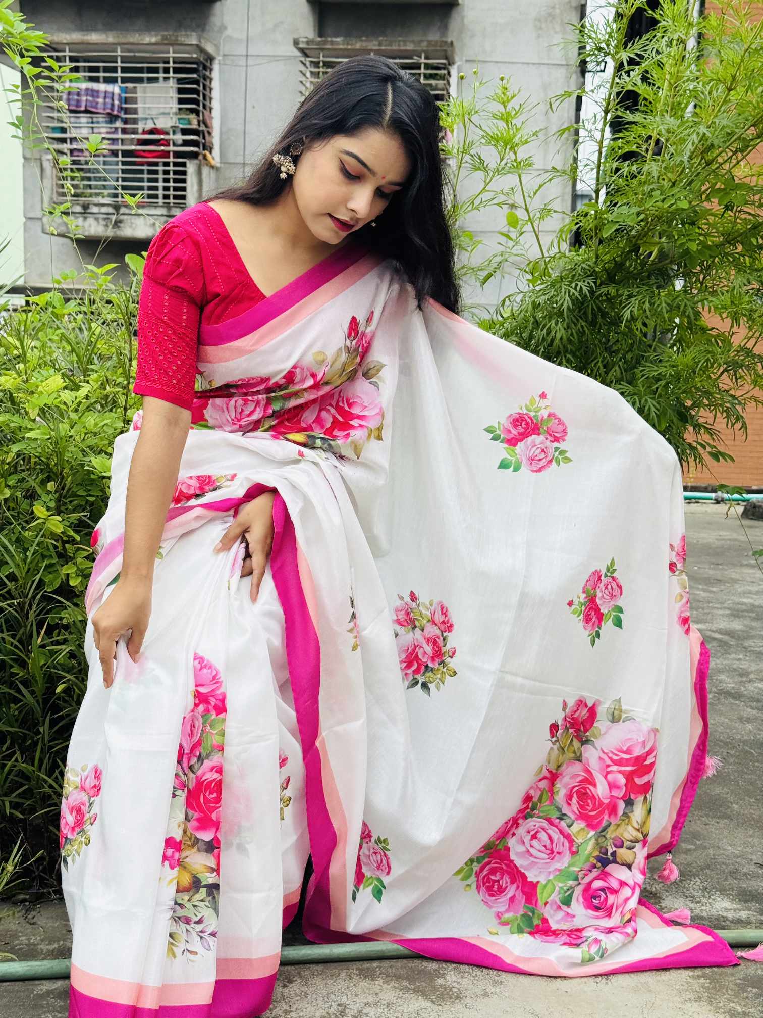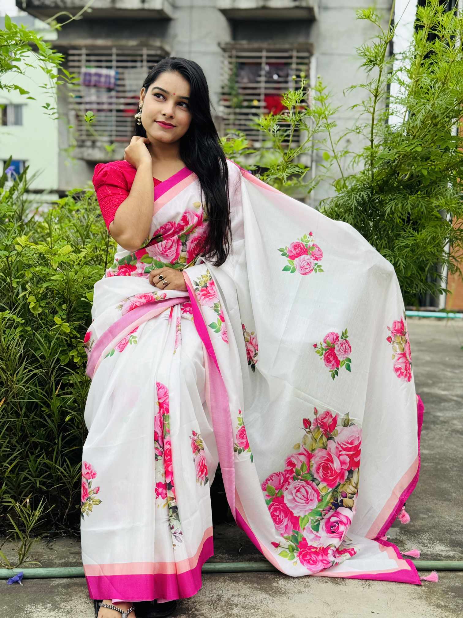 শাড়ি বিবরণ: এক্সক্লুসিভ জাপানি সিল্ক শাড়িতে ডিজিটাল প্রিন্ট করা![]()